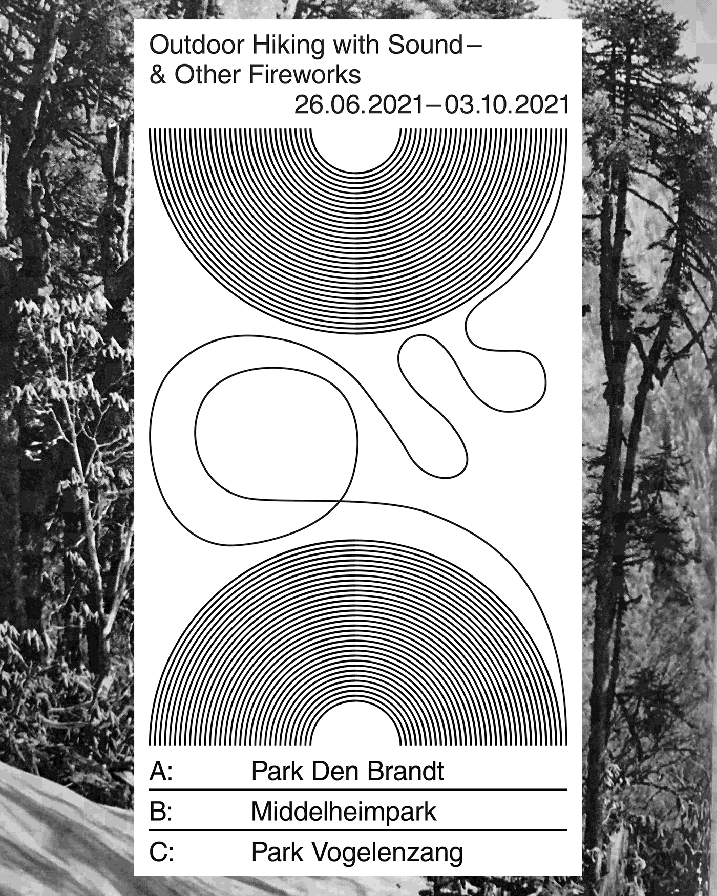 Signage for the walking exhibition Outdoor Hiking with Sound & other Fireworks. (www.outdoorhiking.be)